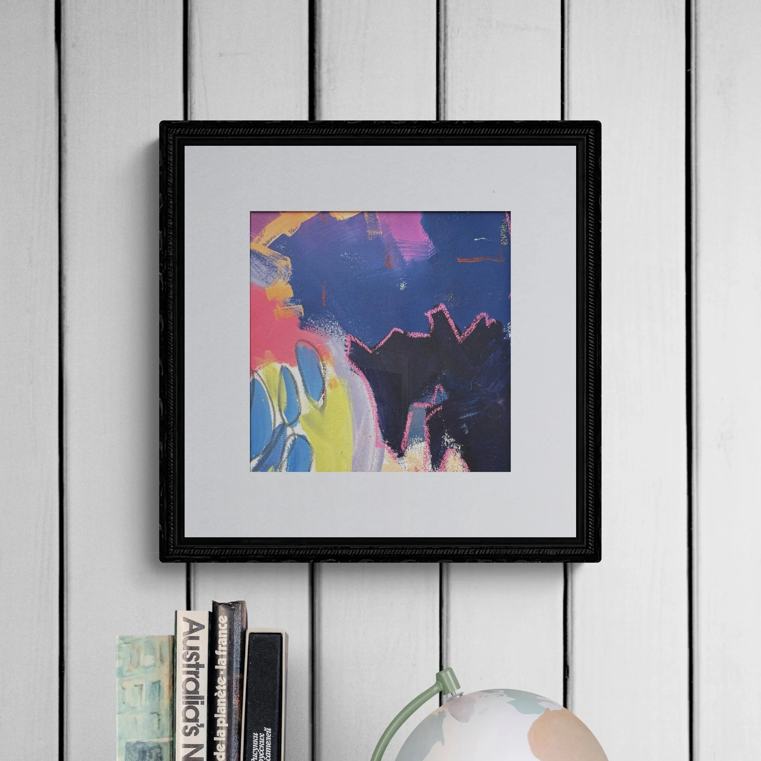 Artwork arrives matted in a clear plastic sleeve.